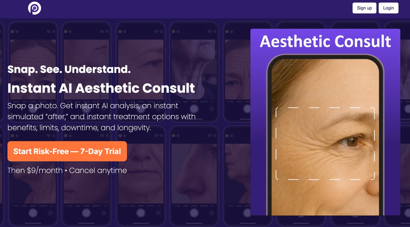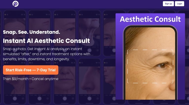 Snap a photo. Get instant AI analysis, an instant simulated “after,” and instant treatment options.
